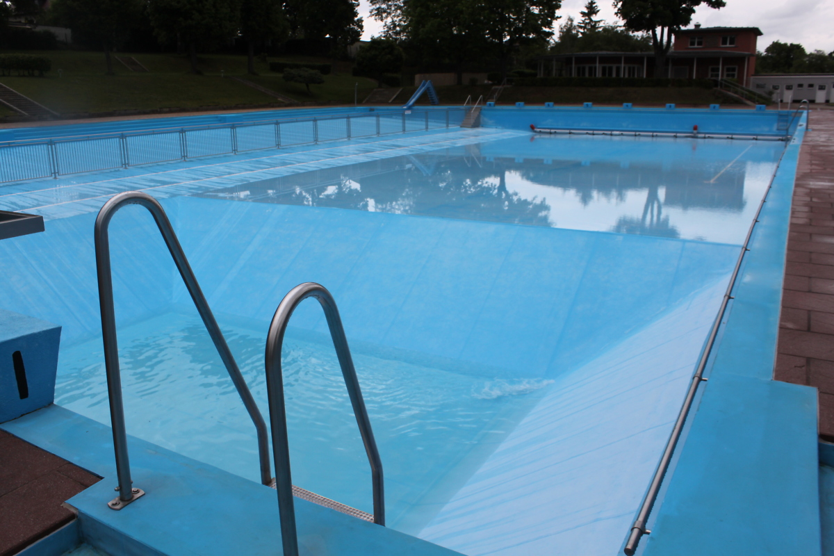 Und: Das Wasser läuft. Seit Montag, dem 25. Mai füllen wir das Becken. Am Freitag sollte die geforderte Füllgrenze erreicht sein. Eine Fachfirma aus der Region nimmt dann die Chlorgas- und Umwälzanlage nach Prüfung in Betrieb. Und dann brauchen wir nur noch Wärme, um eine Badewohlfühltemperatur zu erreichen.